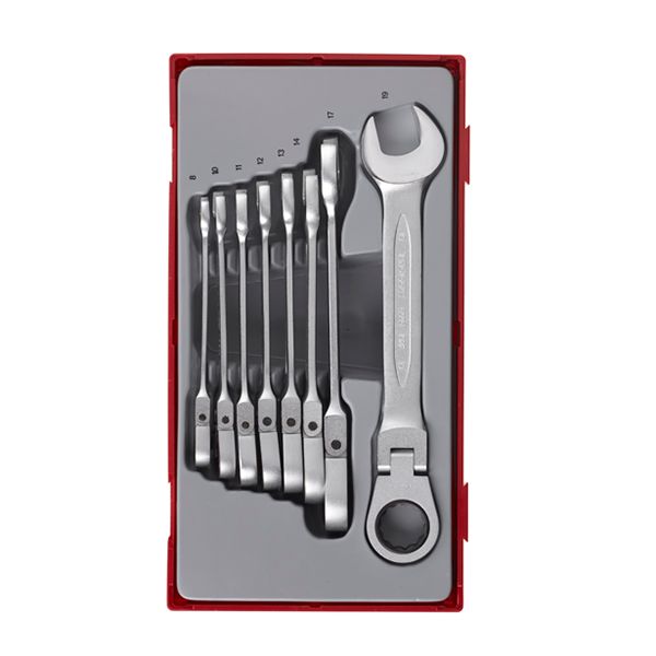 Metric Flex Head Ratcheting Combn 8pc Spanner Set TT Tray