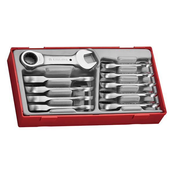 TENG 10PCE STUBBY RATCHET COMBINATION SPANNER SET - TC-TRAY