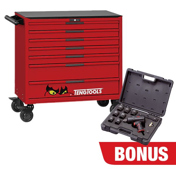 TENG 663PCE PRO35 37" 7 DRAWER ROLL CABINET AUTOMOTIVE TOOL KIT, METRIC RED