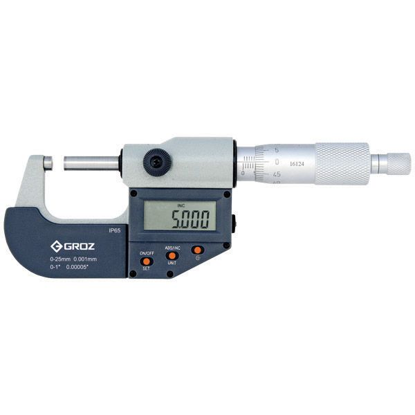 MMED/1/65 GROZ IP65 ELECTRONIC OUTSIDE MICROMETERS, TYPE A, 0-1/0-25MM,0.00005/0.001MM, WITHOUT SPC CONNECTING CABLE,RATCHET THIMBLE, PAINT FRAME