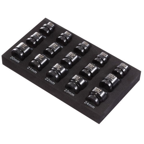 M7 IMPACT STUBBY SOCKET SET, 1/2" DRIVE, 15 PCE, 10 - 24MM