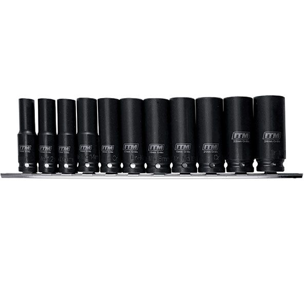 ITM 1/2" DR IMPACT SOCKET RAIL SET 11PCE - METRIC DEEP, 10-24MM