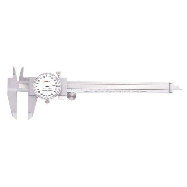 DLC/150 GROZ DIAL CALIPER, METRIC 0-150MM, 0.02MM, WHITE FACE, RANGE PER REVOLUTION:2MM, WITH THUMB WHEEL