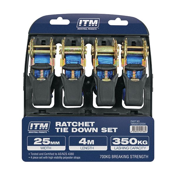 ITM RATCHET STRAP, 4 PACK, 25MM WIDTH, 4M LENGTH 350KG